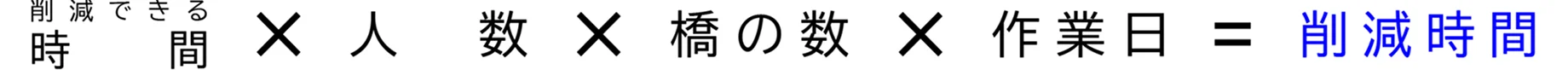 通常目視:96 – 5 = 91分 / 橋 × 2 × 3 × 10 = 5,460分(91時間)/月