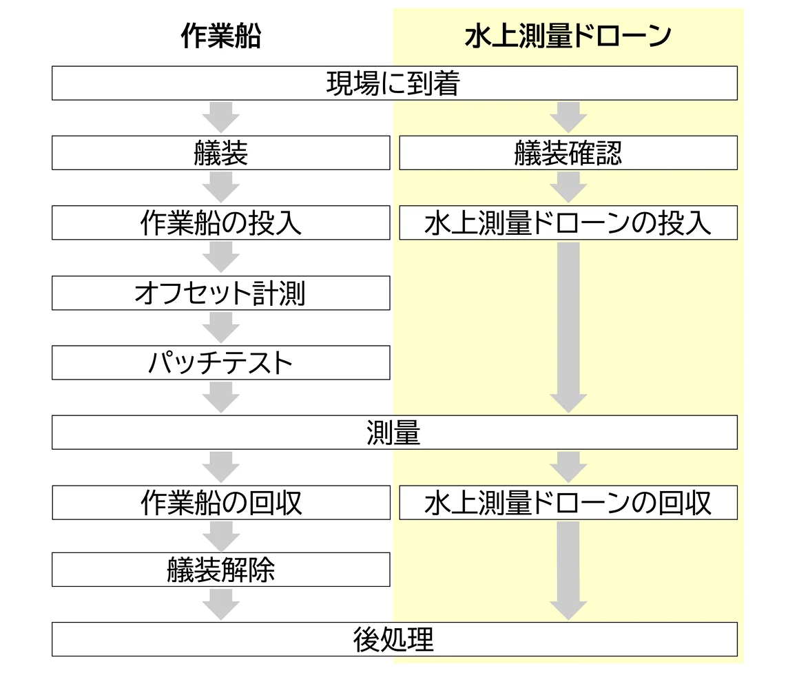 水上測量ドローン導入により艤装時間は1.5~2時間→ゼロに