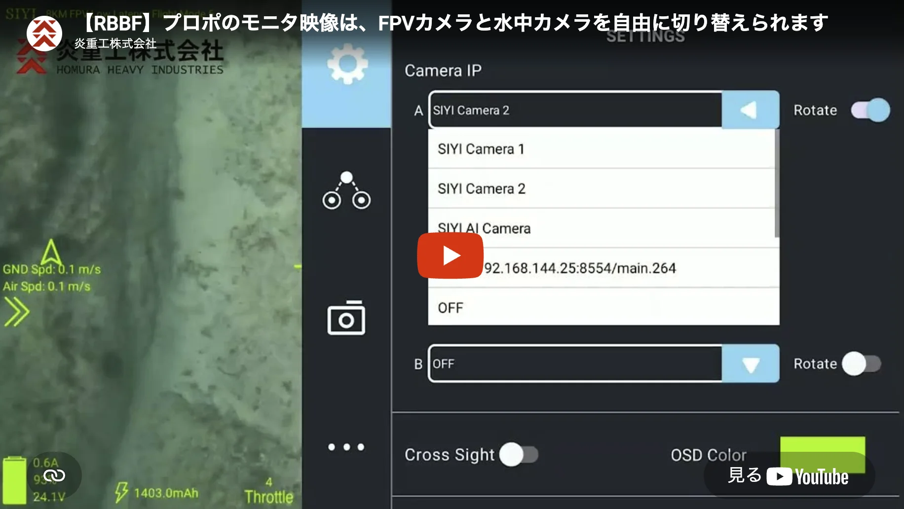 船体を目視しづらい距離まで離れても、プロポのモニタでFPVカメラの映像を確認しながら操作できます。